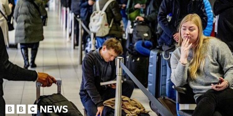 Spanish passenger Javier Sepulveda, who was trying to fly from Amsterdam to Norway, told Reuters news agency the situation at the airport was “chaotic, unacceptable, frustrating, annoying” and “totally unacceptable.”