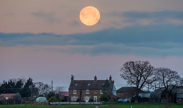 In North Yorkshire a pretty snap of the supermoon showed it rising over a farmhouse in the village of Stokesley.