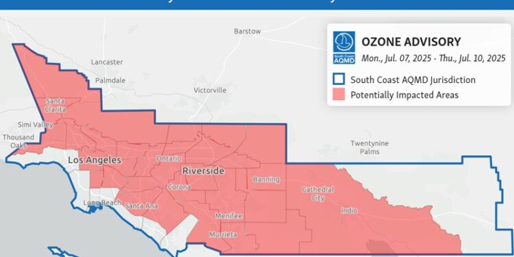 The South Coast Air Quality Management District said in a news release that experts predict “a multi-day extreme ozone (smog) event” to affect much of Southern California through Thursday.