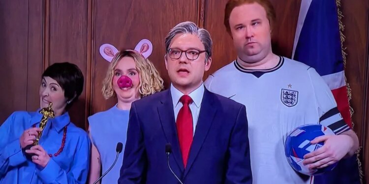 Saturday’s episode featured a cold open of Keir Starmer and friends, including Olivia Colman and Peppa Pig, as well as a send-up of The Traitors, which mocked the show’s perceived unconscious racial bias.