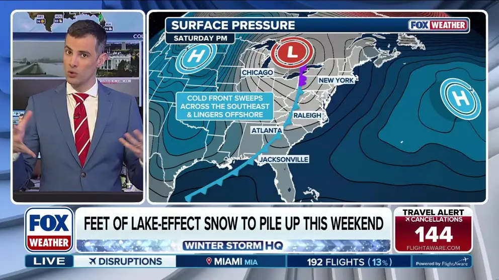 The FOX Forecast Center is monitoring a growing chance for impactful snow across a corridor in the South this weekend that could see flakes fly from the Florida panhandle, through Georgia, the Carolinas and Virginia.