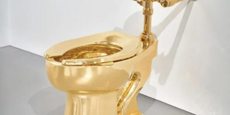 It was first exhibited at New York’s Guggenheim Museum in 2016, when more than 100,000 people queued for their turn to use the gilded lav.