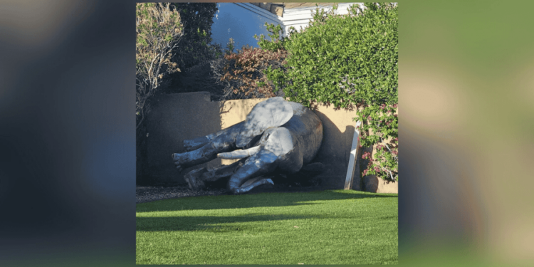Animal control quickly responded to the home, and found the elephant — which indeed wasn’t alive, because it was a statue that was toppled by wind.
