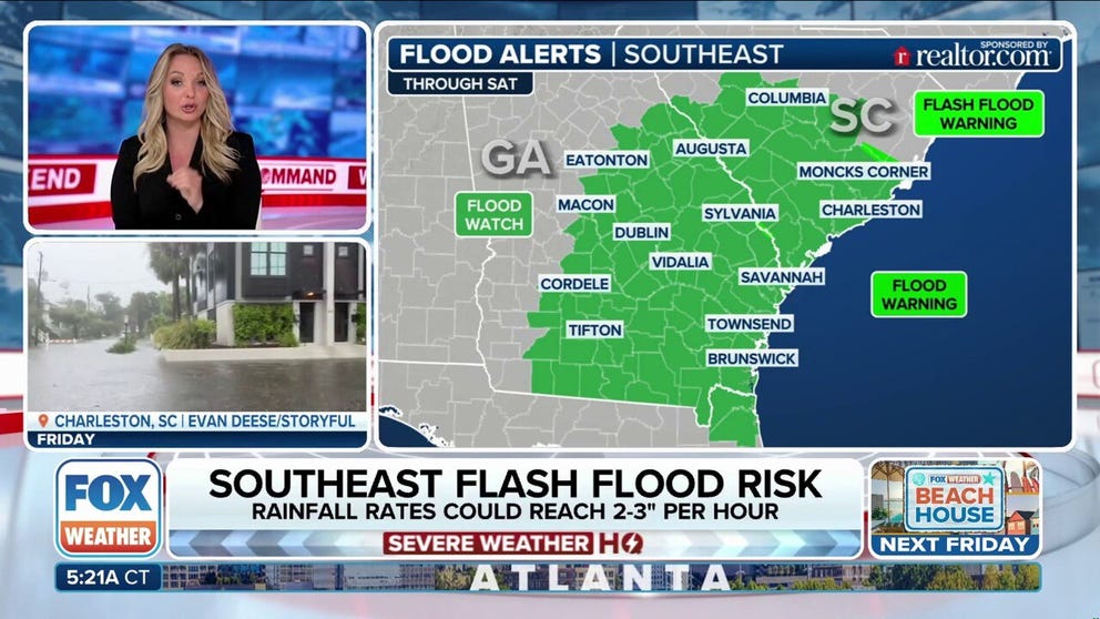 Georgia and South Carolina remain in the risk for flash flooding this weekend as a stalled front hangs over the southeast. Charleston, South Carolina, was soaked with heavy rainfall on Friday evening, leading to flash flooding.