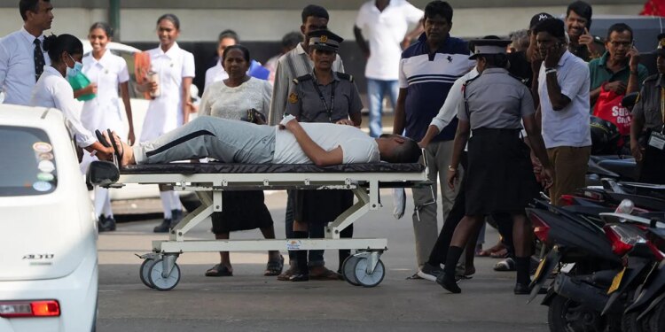An injured Iranian sailor is moved on a stretcher at Galle National Hospital, where the sailors are receiving treatment, following a submarine attack on the Iranian military ship, IRIS Dena, off the coast of Sri Lanka, in Galle, Sri Lanka, March 5, 2026. (Reuters/Thilina Kaluthotage)