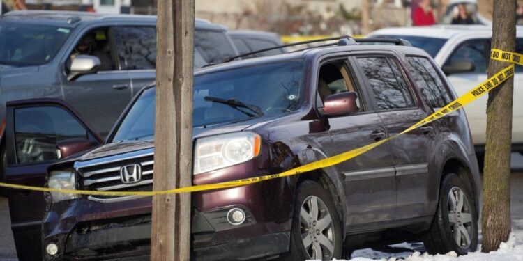 Shots are fired, and the vehicle barrels into parked cars across the street.