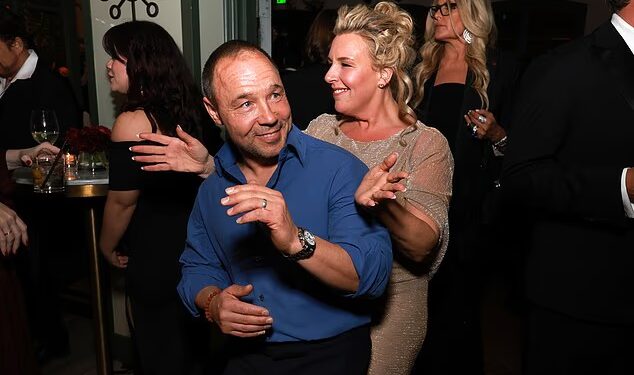 Stephen, 52, sporting a blue shirt and dark trousers, got his groove on with Hannah, 51, at the party, which was hosted at fine dining restaurant, Spago, in Beverly Hills.