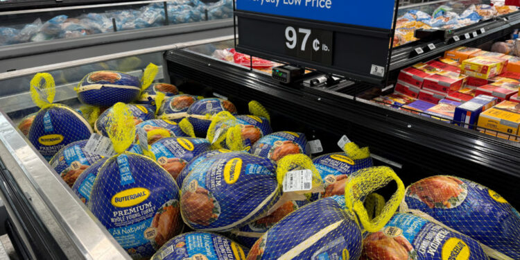 That’s the case for Paul Nadeau, a retired consultant from Austin, Texas, who plans to smoke a turkey this week. Nadeau said he usually smokes a brisket over Thanksgiving weekend, but the beef brisket he buys would now cost more than $100. Turkey prices are also up at his local H-E-B supermarket, he said, but not by as much.