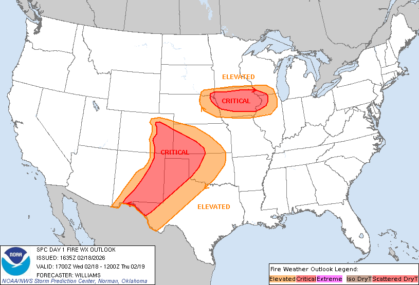 Fire weather watches were in effect for more than 21 million U.S. residents Tuesday, the National Weather Service said. 11 million more were under red flag warnings.