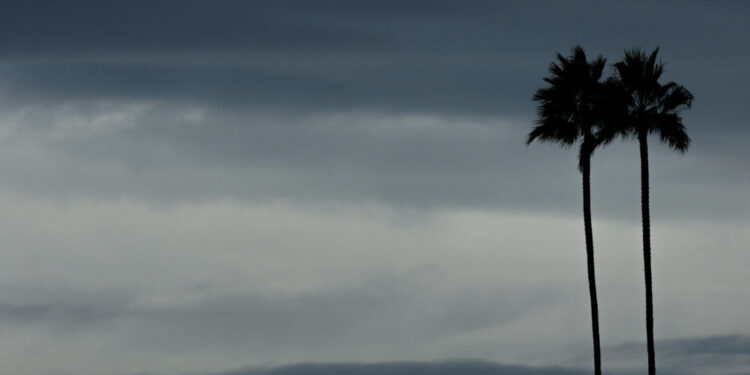 LOS ANGELES (AP) — An unusually strong storm system called an atmospheric river was dousing Southern California on Saturday, prompting flood warnings in areas of coastal Los Angeles County that recently were ravaged by wildfire.