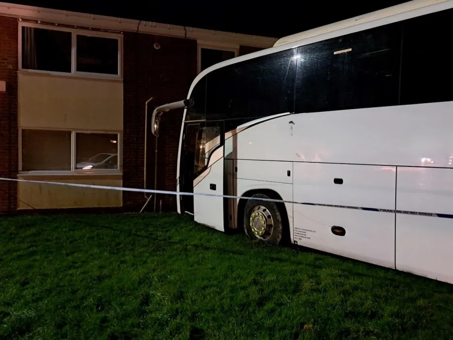 The bus flew into the window of the flat, causing serious damageCredit: Northumbria Police/PA Wire