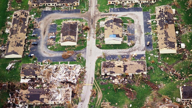 What is left of one neighborhood after Hurricane Andrew ripped through the area in August 1992 in South Dade City, Florida.