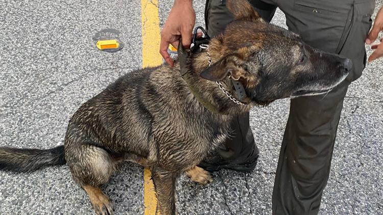 He crashed his car into a ditch and ran toward a nearby pond. Deputy Almeida and K-9 Ghost pursued him into the water, where Ghost bit the man as he allegedly tried to drown the dog to escape.
