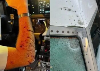 A PILOT was doused in blood after a mystery object smashed into his Boeing 737’s windshield at 36,000 feet – ...