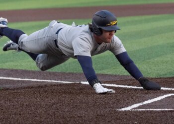 Benches clear during college baseball game after hard out