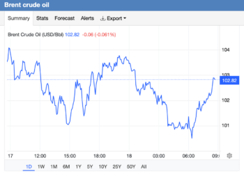Oil was at $102 this morning and moderating downward after Iraq had made a deal to export oil through Turkey, ...