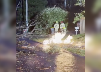 Watch as powerful lighting strike in Katoomba, New South Wales, sparks a fire, explodes a tree, ruptures a gas and ...