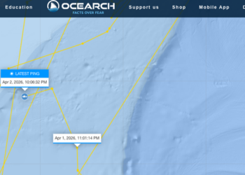 Contender, a 14-foot, 1,600 pound adult male great white shark was tagged by OCEARCH in January near the Florida/Georgia line. ...