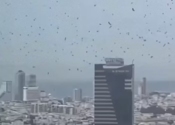 The skies over Tel Aviv were flooded with a sea of crows on Tuesday, in what many people are saying ...
