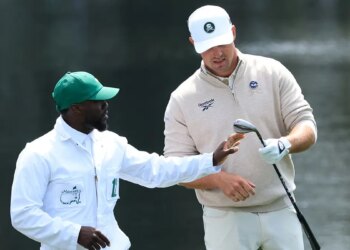 Kevin Hart caddies for Bryson DeChambeau and takes a swing at Augusta Par 3