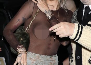 Paris Jackson bared her chest as she went bra-free in a sheer, showstopping ensemble during New York Fashion Week on ...