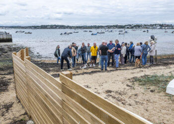 BNPS.co.uk (01202 558833) Pic: BNPS ONLINE EMBARGO UNTIL 14:00 27th OCTOBER Pictured: Angry Sandbanks residents next to the fence Get ...