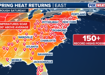 A potentially record-shattering spring heatwave is sweeping across the US East Coast, sending temperatures skyrocketing and triggering warnings to stay ...