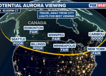A bright green aurora of light shining over North Dakota during Tuesday night's Northern Light spectacleThe Northern Lights are likely ...