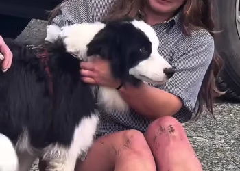 A dog that fell 55m down a waterfall with its owner a week ago was successfully rescued by a group ...