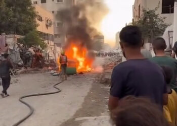 NewsFeedIsraeli forces bombed a residential building causing fires to spread in an intense night of Israeli strikes on Gaza City. ...