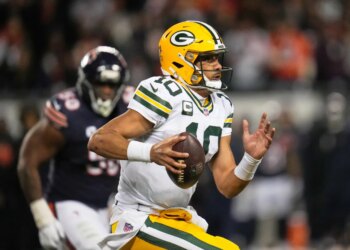 CHICAGO — Green Bay quarterback Jordan Love left the Packers’ NFC North showdown Saturday night against Chicago because of a ...