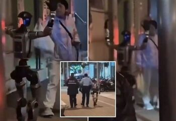 THIS is the hilarious moment a boogying robot dances too hard and sends food and cutlery flying in a high ...