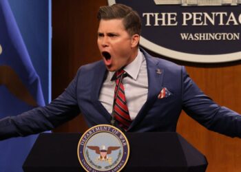 “Weekend Update” straight man Colin Jost played up Hegseth’s prickly side in a parody press conference, where he stormed into ...