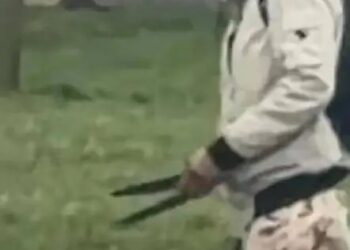 ARMED cops have swarmed a city street after ‘multiple people were stabbed’ by a man spotted carrying two large knives. ...
