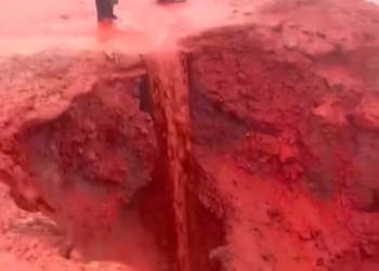Iran's Hormuz Island briefly turned bright red this week, as red soil flowed into the sea and turned the water ...