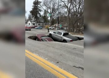 Officers from the Omaha Police Department respond to a sinkhole in the middle of a busy street.OMAHA, Neb. – Travelers ...