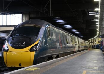 An Avanti West Coast train is parked at Euston Station in London on October 5, 2022. – A 24-hour walkout ...