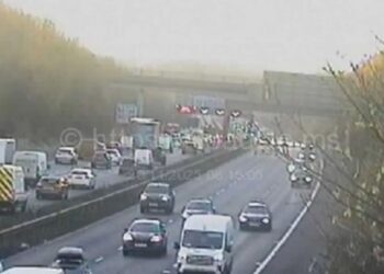 A MAJOR UK motorway has ground to a halt after a horror multi-car collision left two lanes closed. Long queues ...