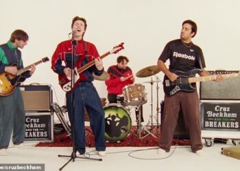 Hailey Bieber shows off her enviable figure in micro shorts and crop top to model husband Justin’s brand