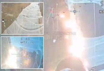 THIS is the terrifying moment a Russian “dragon” drone inflicted a reign of fire onto a Ukrainian road in kamikaze ...
