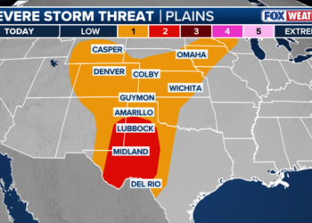 A corridor between Minneapolis and Green Bay, Wisconsin is under a Level 3 out of 5 risk of severe thunderstorms, ...