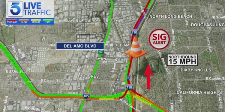 The spill was reported at about 4:15 a.m. according to a Sigalert issued by Caltrans. An oil tanker crashed in the northbound lanes of the 710 near Del Amo Boulevard, leaving spillage on the ground.