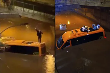 Five Brits were onboard as the bus was engulfed by the floods, forcing them to escape through the roof before firefighters rescued them.