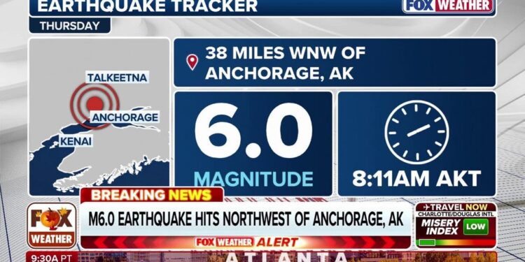 SUSINTA, Alaska– A magnitude 5.6 earthquake was reported in southern Alaska on Thanksgiving Day, roughly 38 miles from Anchorage, where moderate shaking was reported.