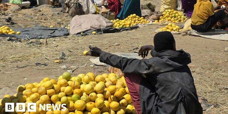 “We almost sell them for free and sometimes get rid of them on the way [to market], because they get rotten,” says Hafiz Ali, an orange vendor in Golo town, which is in the midst of the mountains in Central Darfur state.
