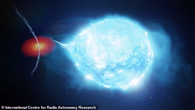 Co–author Professor James Miller–Jones, of Curtin University, told the Daily Mail: ‘Since we know how strong the wind from the star is, we know how much force it creates on the jet. This allows us to figure out how powerful the jet is.’