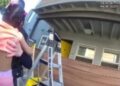 Incredible moment cop catches toddler and dog thrown off balcony by screaming mum as flames ravage apartment