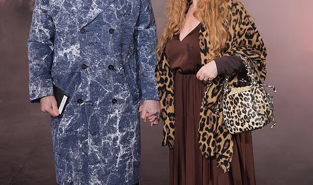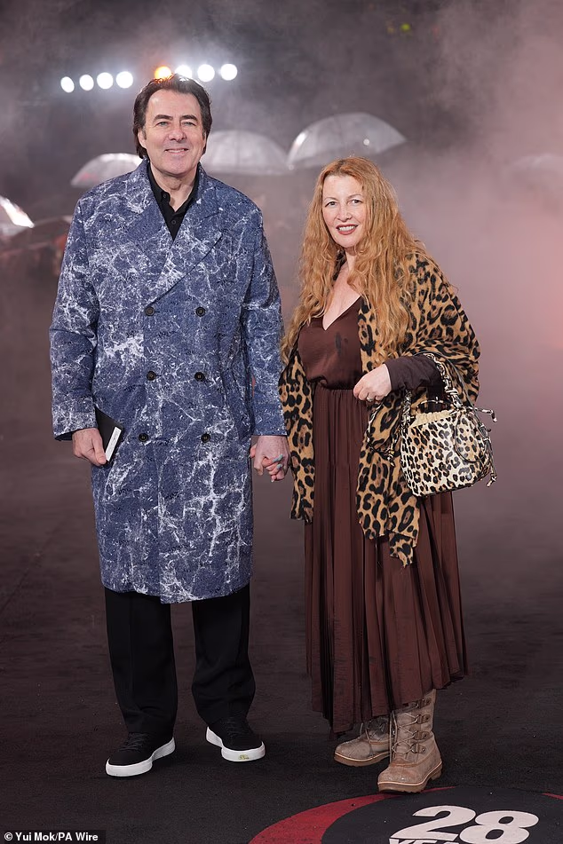 Jane looked incredible in a boho-inspired brown dress and a leopard print shawl as she attended a premiere with her husband this week (right, in 2023)