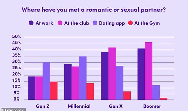 Lovehoney’s data shows that the number of people who have met a romantic or sexual partner at work has waned, decreasing from 41 per cent of Boomers to 19 per cent of Gen Z.