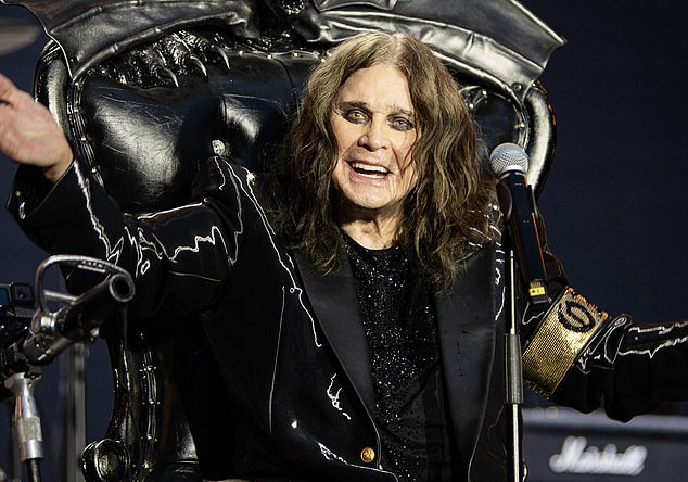 Osbourne is pictured eating an ice cream in hospital after his June 2022 operation, which his wife Sharon would ‘determine the rest of his life’